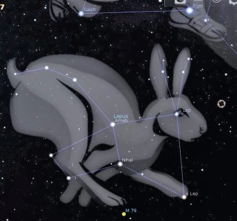 With Easter happening this weekend let us look for signs of it in the night sky. Lambs have long been associated with spring and Easter, so we can start with Aries the Ram low in the west. For many, the symbol of Easter is Peter Cottontail, the Easter Bunny. When darkness sets in we can see Lepus the Hare below the feet of Orion. I see the constellation as three vertical pairs of stars, with the brightest pair in the middle and the widest to the right. With a reasonably dark sky you can see the bunny ears between the widest pair and Orion’s brightest star, Rigel.