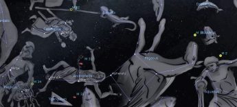 The Moon is near Regulus this Saturday morning and it is new next Friday. Mercury is low in the southwest this weekend, setting 30 minutes after sunset and extending that to 40 minutes by next weekend. Venus is ten degrees above the horizon at sunset all week, setting before 8 pm. Saturn is at its highest and best for observing around 10 pm, showing off its rings nearly edge-on. At that time on Wednesday telescope users might see Jupiter’s Red Spot near the middle of the planet. Seen best in the morning sky, late in the week Mars makes a prominent line with Castor and Pollux as it crosses the constellation border into Cancer. Comet C/2023 A3 Tsuchinshan-ATLAS should remain visible in binoculars as it moves between a pair of stars in the eastern shoulder of Ophiuchus on Monday, and near the end of the week it is within a V-shaped asterism that was once a constellation called Poniatowski’s Bull.