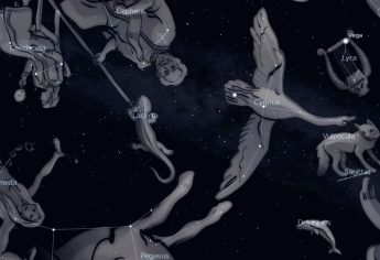 Camouflaged partly by the Milky Way, Lacerta is surrounded by Cepheus, Cassiopeia, Pegasus and Cygnus. A good pointer to it is the base of the Summer Triangle. Running a line from bright Vega to Deneb at the tail of Cygnus and extending it about the same distance puts you near the zigzag shape of the lizard. It is one of those dim constellations created in the late 17th century by Johannes Hevelius to fill in an “empty” section of the sky. At first he named it Stellio; a stellion being a newt with star-like spots found near the Mediterranean Sea. If you manage to catch Lacerta, give yourself a pat on the back and let it go.