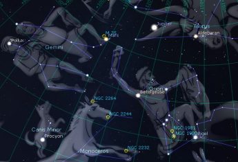 The Moon is at first quarter on Wednesday, riding low in the south at sunset near the winter solstice point of the ecliptic. Venus sets an hour after sunset so catch it in early twilight when it is a fist-width above the horizon. How soon can you see it with just your eyes? Saturn is at opposition on Sunday, rising at sunset and setting around sunrise. Jupiter rises in the late evening, and in the morning you can see Orion in the southeast about to spike it with his tennis racquet. Early risers can catch Mars within the same binocular view as the M35 star cluster in Gemini. Just past greatest elongation in the morning sky, Mercury is brightening and it sits just to the left of Regulus on Monday. If you live in a rural area, this week look for the subtle wedge of zodiacal light running from the eastern horizon up toward the Pleiades an hour or more before sunrise.
