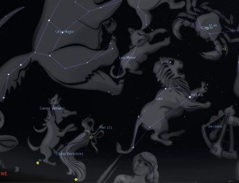 The Moon is near Spica on Monday, at third quarter on Thursday and below Antares Friday. Venus is near its brightest in in the evening sky, setting around 9:30 this weekend. Saturn is getting difficult to see, setting less than an hour after sunset, and by next weekend Mercury will be approaching it from below. On Sunday telescope and binocular users might see Jupiter’s moon Io disappear behind the planet at 8:42 pm and Europa emerge from Jupiter’s shadow at 10:15. Mars holds its position in the middle of Gemini, making an isosceles triangle with Castor and Pollux. Rural observers can try to see the wedge of the zodiacal light toward the west about 60 to 90 minutes after sunset.