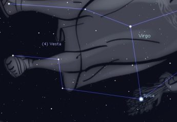 Ceres is by far the largest asteroid and it is now categorized as a dwarf planet along with distant Pluto, Eris, Makemake and Haumea. The Heavens-Above website has an Asteroids section which includes two maps for each of the brighter asteroids; one with a wide-field view of the constellations in the area, and an expanded inset with a binocular-size view showing the asteroid among the nearby stars. The brightest asteroid, Vesta, is currently in the evening sky in Virgo.