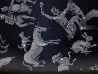 The name Procyon means “before the dog,” indicating it is a harbinger of Sirius the Dog Star which rises about 40 minutes later. Ancient Egyptian farmers watched for the first visible rising of Sirius before sunrise, as experience had taught them the Nile would soon flood its banks with fertile soil when this occurred. In mythology the two dogs are sometimes depicted as Laelaps (Canis Major), an extremely fast dog, and an equally fast fox (Canis Minor). The dog was sent to hunt the fox but, after a long chase with no apparent end, Zeus turned them both to stone and placed them in the sky.